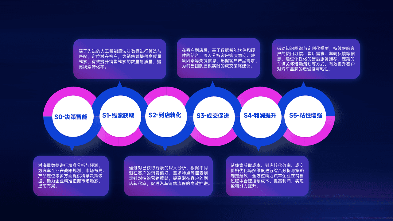 通过拓宽潜在客户来源、、、优化线索分配并提高到店转化率,,,以增强销售效率。。。。同时,,,,利用线索数据不断优化分析模型,,,,有效提升转化率,,,,扩大营销影响力。。。。
